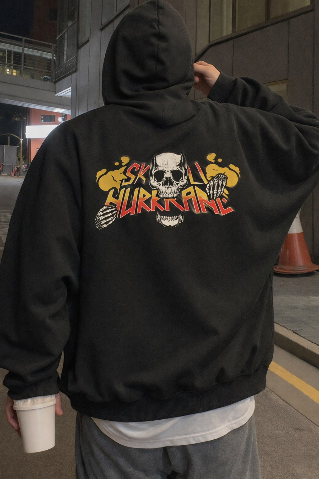 This heavyweight hoodie blends street-ready attitude with cozy reliability. A bold, vintage-inspired skull graphic arcs across the back with distressed lettering and warm, amber accents — it reads like a worn concert poster you’ve held onto since your first show. The loose, classic fit and spacious kangaroo pocket make it a go-to layer for late-night drives, merch-table hangs, or quiet mornings with coffee. Durable cotton-poly fabric holds prints well and keeps its shape, while the double-lined hood and color-matched drawcord add subtle, built-to-last details. Wear it over a tee, under a jacket, or solo when you want something comfortable that still says you care about how you look.